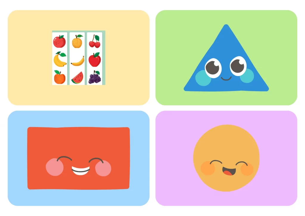 Her kelime kartı canlı ve ilgi çekici resimlerle desteklenmiştir.